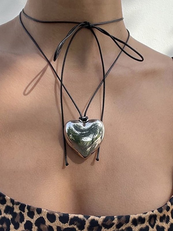 Adjustable Chunky Heart Charm Necklace