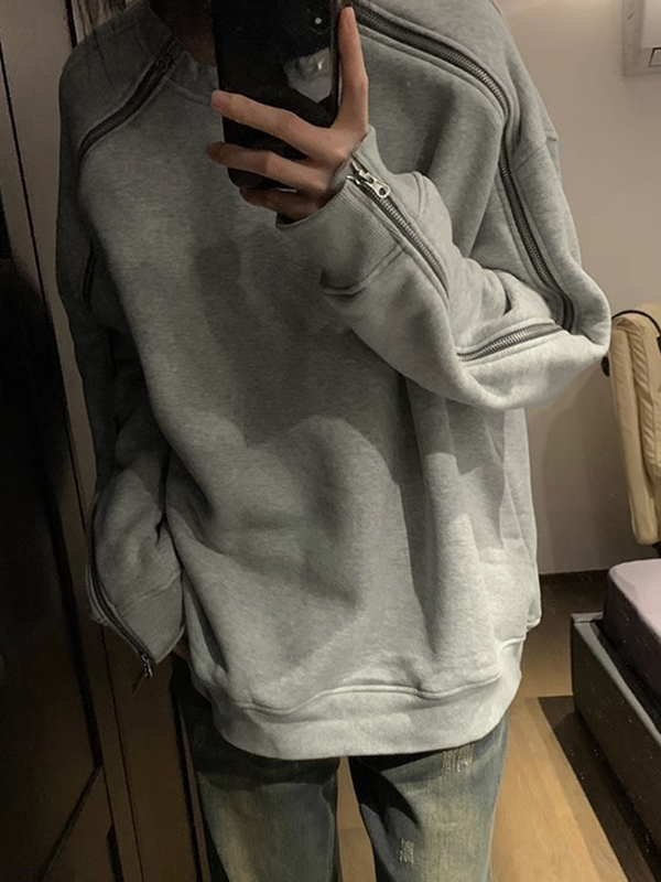 Men’s Solid Color Double Zipper Sweatshirt
