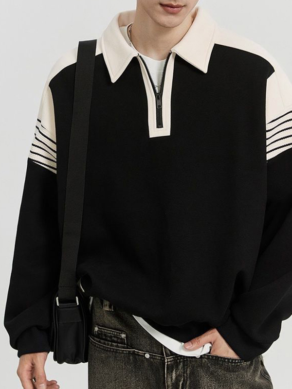 Men’s Contrast Color Lapel Neck Half Zip Sweatshirt