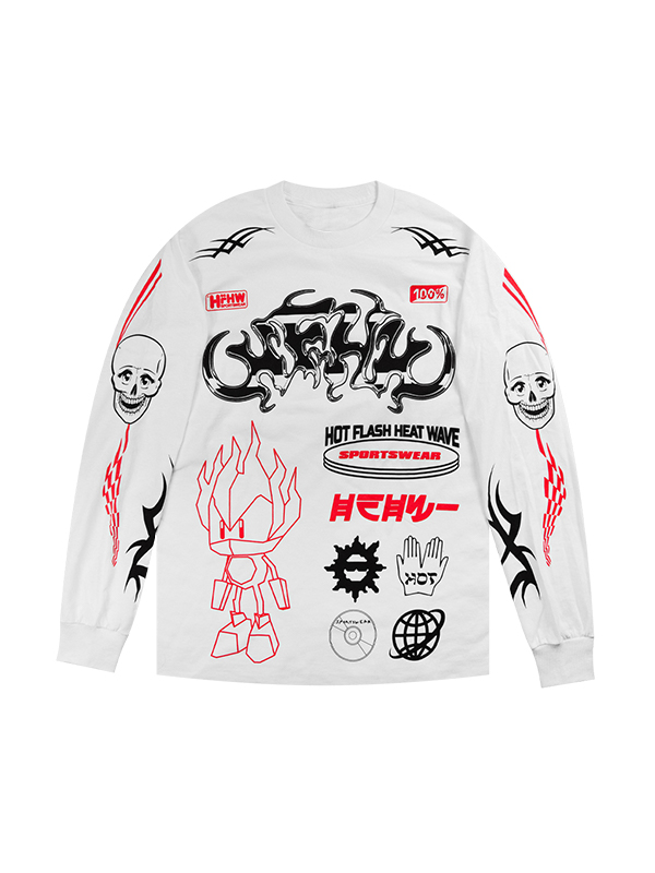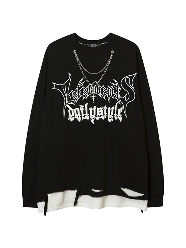 Fake Two Piece Hole Design Chain Loose Dark Print Sweatshirt