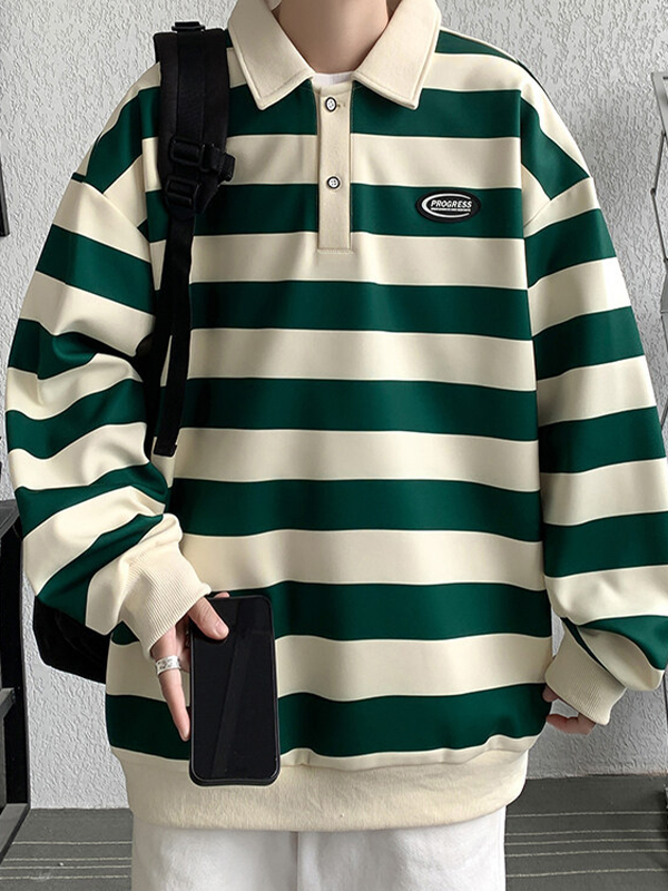 Men’s Vintage Striped Shirt Neck Sweatshirt