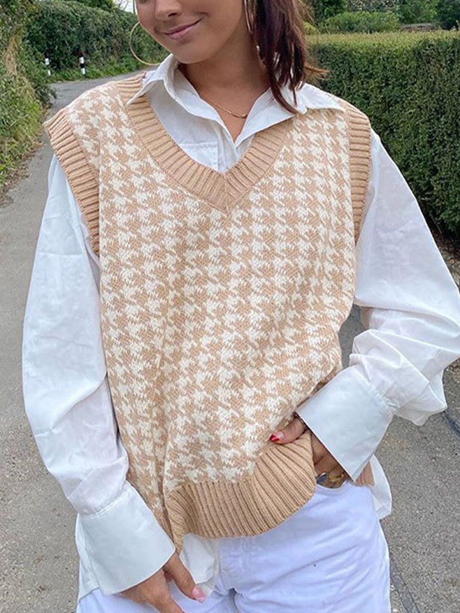 V Neck Houndstooth Sweater Vest