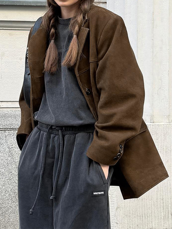 Nubuck Vintage Lapel Loose Suede Jacket