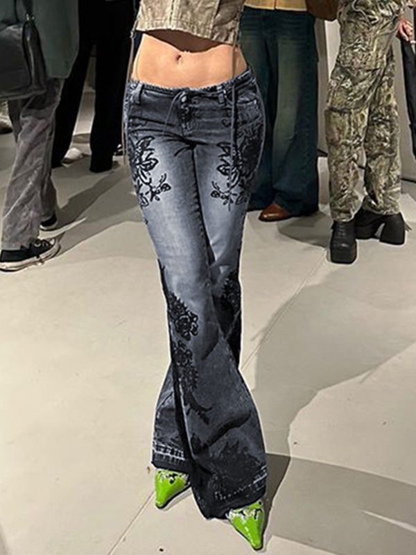 Be the first to review “Vintage Plant Print Low Rise Flare Jeans”