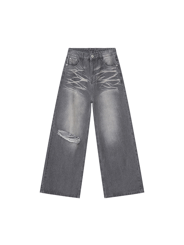 Be the first to review “Vintage Washed Pattern Holes Loose Jeans”