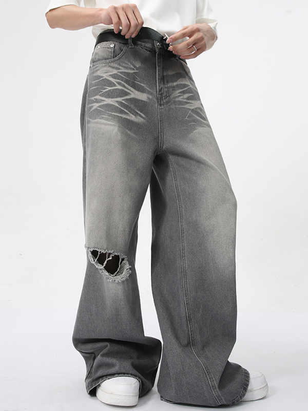 Vintage Washed Pattern Holes Loose Jeans