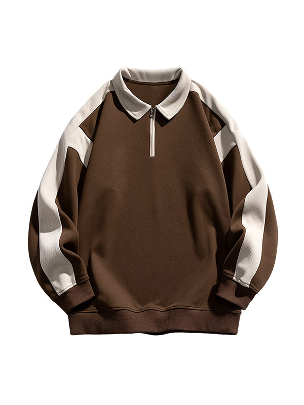 Men’s Contrast Color Lapel Neck Half Zip Sweatshirt