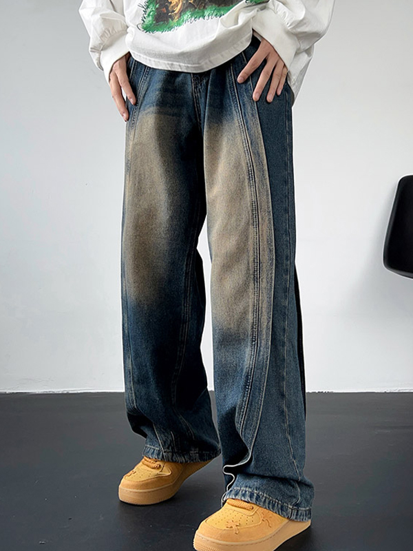 Men’S Retro Washed Wide Leg Straight Denim Shorts