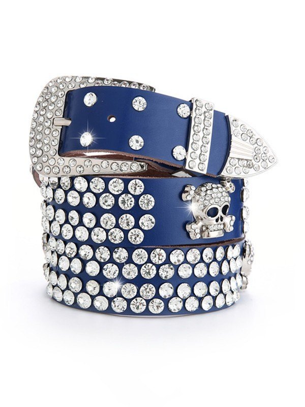 Rhinestone Skull Buckle Belt