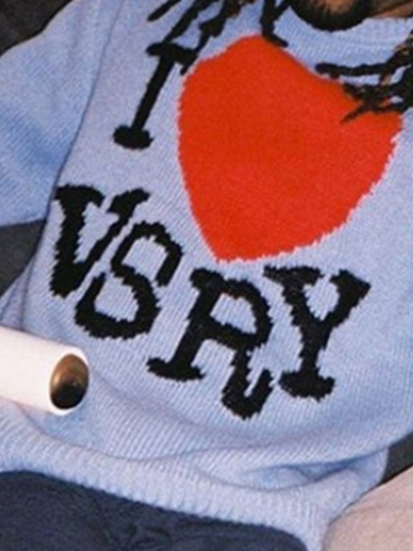 Men’s Letter Heart Jacquard Crew Neck Knit Sweater
